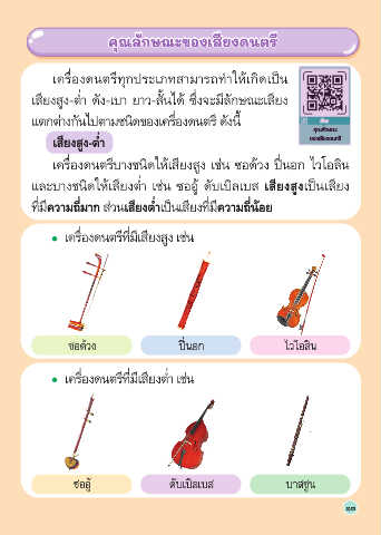 เคร่องดนตรีบางชนิดให้เสียงสูง เช่น ซอด้วง ป่นอก ไวโอลิน