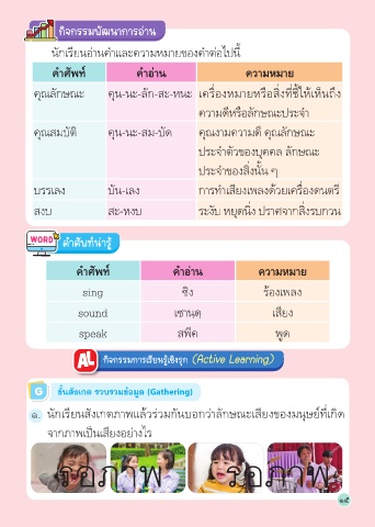 นักเรียนอ่านคำาและความหมายของคำาต่อไปนี้
