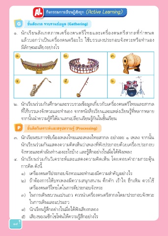 ๒. นักเรียนรวมกันศึกษาและรวบรวมขอมูลเกี่ยวกับเคร่องดนตรีไทยและสากล