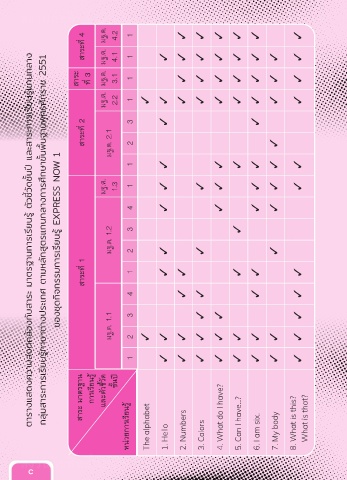 ตารางแสดงความสอดคล้้องกัับสาระ มาตรฐานกัารเรียนร ตัวชี้ี�วัดชี้ั�นปีี แล้ะสาระกัารเรียนรแกันกัล้าง