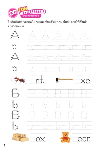 ฝึึกคััดตััวอัักษรตัามเส้้นประและเขีียนตััวอัักษรลงในช่่อังว่างให้้เป็นคัำา