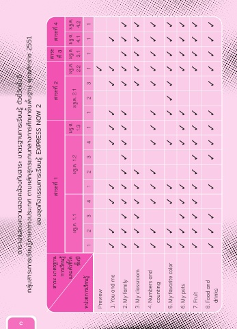 ตารางแสดงความสอดคล้้องกัับสาระ มาตรฐานกัารเรียนร ตัวชี้�วัดชี้ั�นปีี