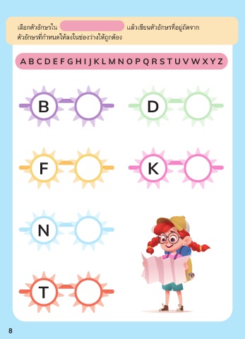 ื ่ � เลอักติัวอัักษรใน แล้วเขียนติัวอัักษรที่่อัย่�ถึัดจัาก ่ ติัวอัักษรที่่กำาหนดให้ลงในช่�อังว�างให้ถึกติ้อัง � A B C D E F G H I J K L M N O P Q R S T U V W X Y Z B D F K N T 8