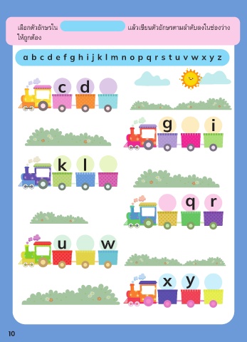 ื เลอักติัวอัักษรใน แล้วเขียนติัวอัักษรติามลำาดับลงในช่�อังว�าง ่ ่ ให้ถึกติ้อัง a b c d e f g h i j k l m n o p q r s t u v w x y z c d g i k l q r u w x y 10
