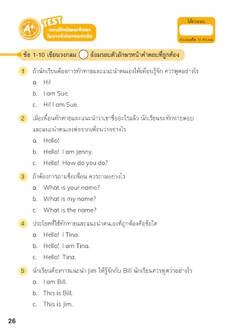 2 เมื่อเพื่อนทักทายและแนะนำว่าเขาชื่ออะไรแล้ว นักเรียนจะทักทายตอบ