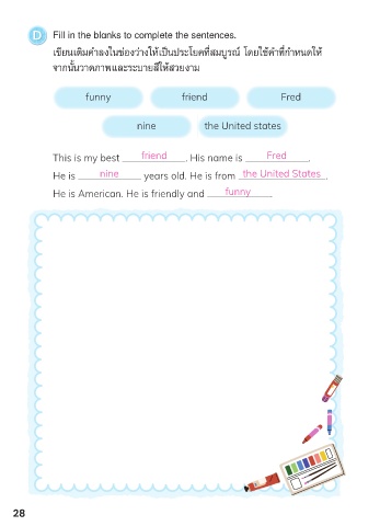 เขีียนเติมคู่ำาลงในช่�อ่งว�างให้้เป็นประโยคู่ที�สมบูรณ์์ โดยใช่้คู่ำาทีกำาห้นดให้้