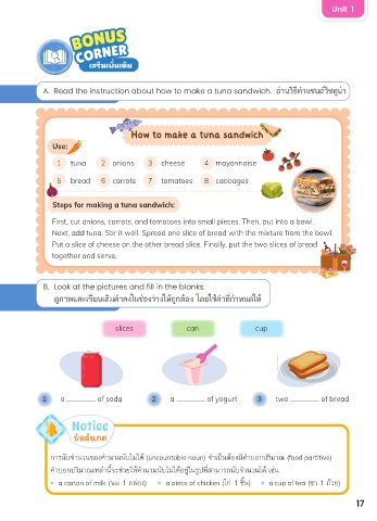 A. Read the instruction about how to make a tuna sandwich. อ่านวิธี่ที่ำแซนดูวิชที่น่า