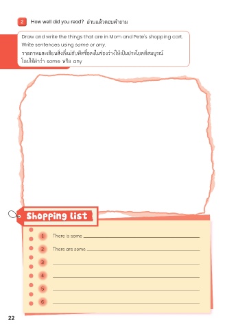 Draw and write the things that are in Mom and Pete’s shopping cart.