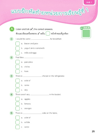 A Listen and tick ( ) the correct answers. Test A