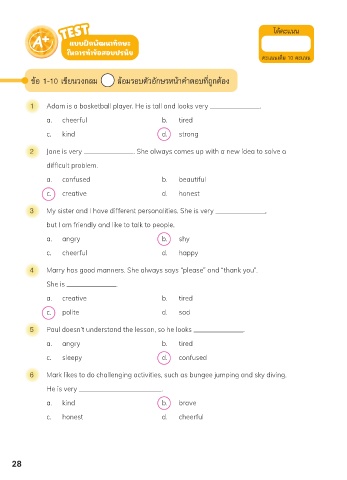 ขี้อ่ 1-10 เขีียนวงกลม ล้อ่มรอ่บตัวอ่ักษรห้น้าคู่ำาตอ่บทีถูกต้อ่ง