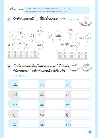 ๔. นักเรียนเติมคําที่อยู่ในมาตรา ก กา ให้เป็นคํา