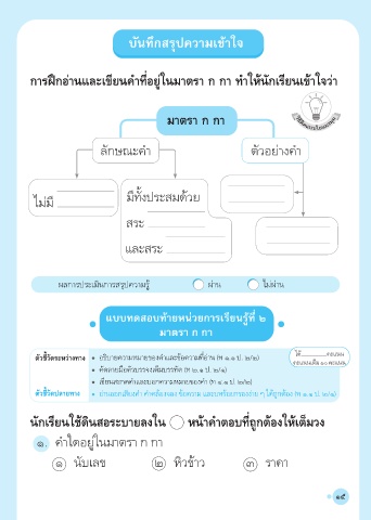 การฝึกอ่านและเขียนคําที่อยู่ในมาตรา ก กา ทําให้นักเรียนเข้าใจว่า