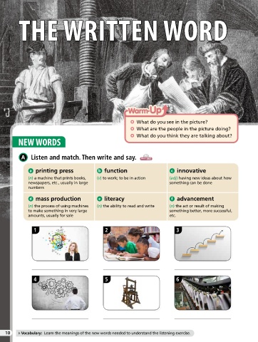 10 Vocabulary: Learn the meanings of the new words needed to understand the listening exercise.