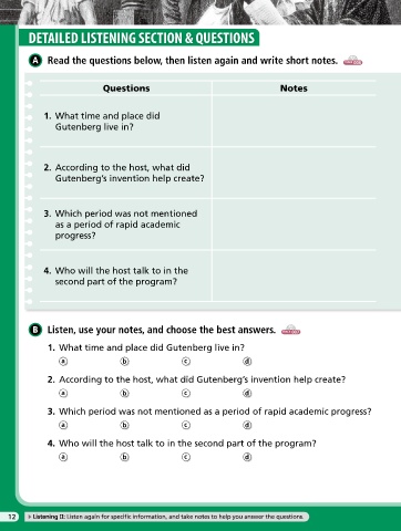 12 Listening II: Listen again for specific information, and take notes to help you answer the questions.