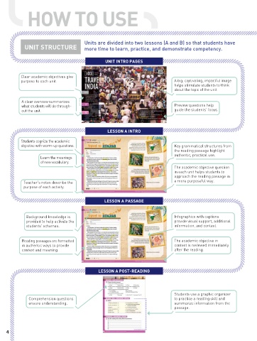 Units are divided into two lessons (A and B) so that students have