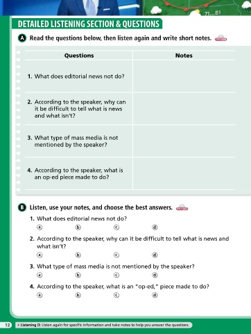 12 Listening II: Listen again for specific information and take notes to help you answer the questions.