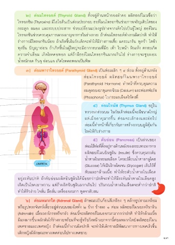 ๒) ต่อมไทรอยด (Thyroid Gland) ตงอยูดานหนาของลำคอ ผลตฮอรโมนชอวา