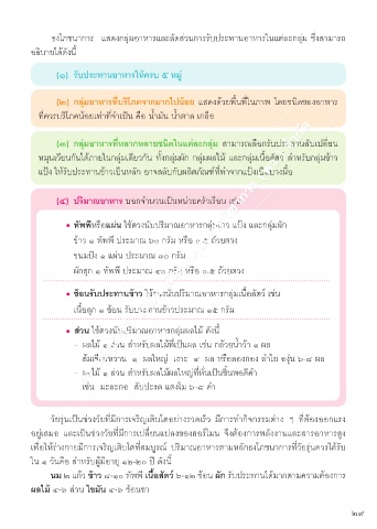 นม ๒ แก้ว ข้าว 8-๑0 ทัพพ เนื�อสต่ว 6-๑๒ ช้อน ผ่ัก รับประทานได้มากตามความต้องการ