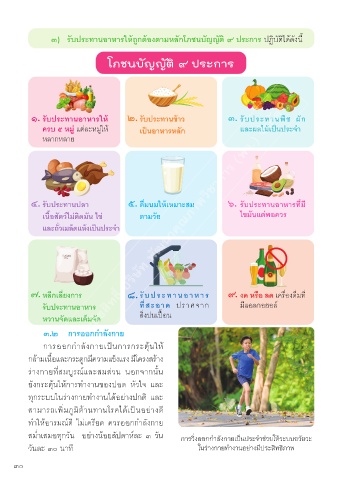 ๓) รับประทานอาหารให้ถููกต่้องต่ามหลักโภชนบญิญิต่ ๙ ประการ ปฏิิบติไดดังนี �