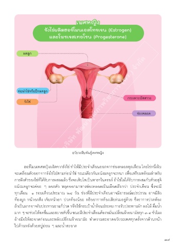 ฮอร์โมนเพศหญิงผลิตจากรังไข่ ทาให้มีประจาเดือนออกจากช่องคลอดทุกเดือน โดยไข่หน่งใบ