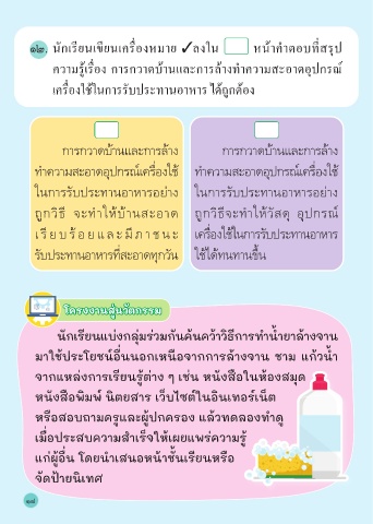 น ักเรียนแบ่งกลุ่มร่วมกันค้นคว้าวิธีการทำานำายาล้างจาน