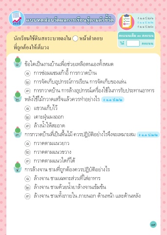 ๓ การกวาดบ้าน การล้างอุปกรณ์เครื่องใช้ในการรับประทานอาหาร