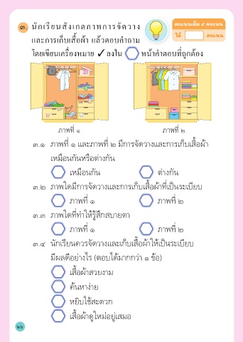 ๓.๔ นักเรียนควรจัดวางและเก็บเสื้อผ้าให้เป็นระเบียบ