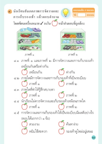 การเก็บรองเท้า แล้วตอบคาถาม ได้ คะแนน