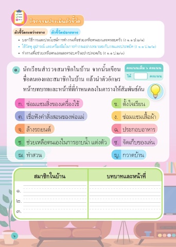 ๑. นักเรียนสารวจสมาชิกในบ้าน จากน้นเขียน คะแนนเต็ม ๖ คะแนน