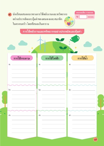 ๙. นักเรียนเสนอแนวทางการใช้พลังงานและทรัพยากร คะแนนเต็ม ๙ คะแนน