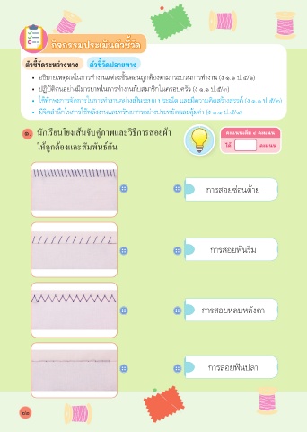 ๑. นักเรียนโยงเส้นจับคู่ภาพและวิธีการสอยผ้า คะแนนเต็ม ๔ คะแนน
