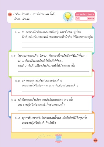 ๒. นักเรียนอ่านสถานการณ์ซ่อมแซมเสื้อผ้า คะแนนเต็ม ๑๐ คะแนน