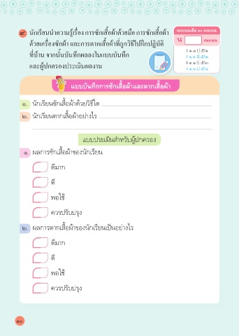 ด้วยเครื่องซักผ้า และการตากเสื้อผ้าที่ถูกวิธีไปฝึกปฏิบัติ ได้ คะแนน