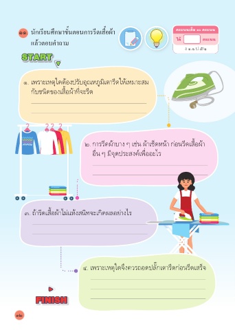 ๑๑. นักเรียนศึกษาขั้นตอนการรีดเสื้อผ้า คะแนนเต็ม ๑๐ คะแนน