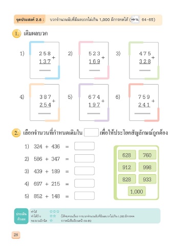 Page 33 - ตัวอย่าง แบบฝึกหัด คณิตศาสตร์ ป.2 เล่ม 1