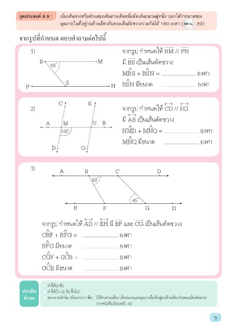 ตัวเอง พยายามอีกนิด (น้อยกว่า 2 ข้อ) (ให้ทบทวนเรื่อง เส้นขนานและมุมภายในที่อยู่บนข้างเดียวกันของเส้นตัดขวาง