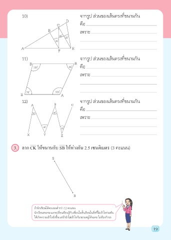 3. ลาก CK ให้ขนานกับ SB ให้ห่างกัน 2.5 เซนติเมตร (3 คะแนน)