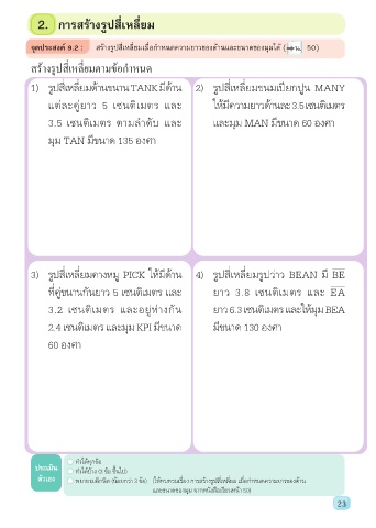 จุดประสงค์ 9.2 : สร้างรูปสี่เหลี่ยมเมื่อกำาหนดความยาวของด้านและขนาดของมุมได้ ( น. 50)