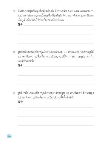 5) รูปส่เหล่ยมขนมเปียกปูนมีความยาวรอบรูป 30 เซนติเมตร มีความสูง