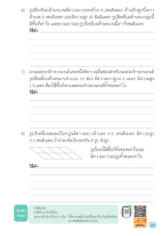 ตัวเอง พยายามอีกนิด (น้อยกว่า 5 ข้อ) (ให้ทบทวนเร่อง โจทย์ปัญหาเกี่ยวกับรูปสี่เหลี่ยม