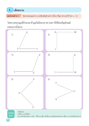 จุดประสงค์ 8.1 : วัดขนาดของมุมต่างๆ และเขียนสัญลักษณ์การตั้งฉากที่มุม 90 องศาได้ ( น. 3)