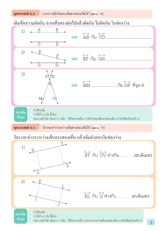 จุดประสงค์ 8.2 : บอกการตัดกันของเส้นตรงสองเส้นได้ ( น. 4)