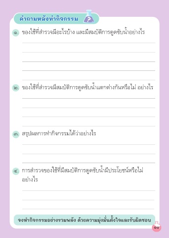 ๔. การสํารวจของใช้ที่มีสมบัติการดูดซับนํ้ามีประโยชน์หรือไม่