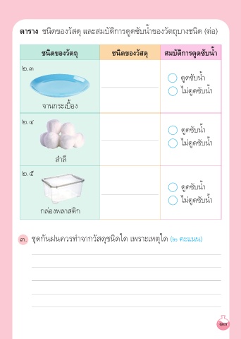 ชนิดของวัตถุ ชนิดของวัสดุ สมบัติการดูดซับนํ้า