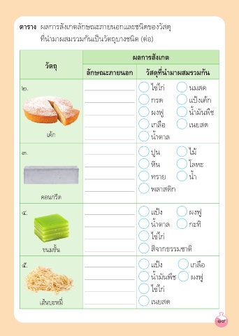 ตาราง ผลการสังเกตลักษณะภายนอกและชนิดของวัสดุ