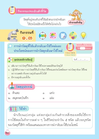 ๒. ปฏิบัติกิจกรรม การนําวัสดุที่ใช้แล้วกลับมาใช้ใหม่และประโยชน์ของการนําวัสดุกลับมาใช้ใหม่