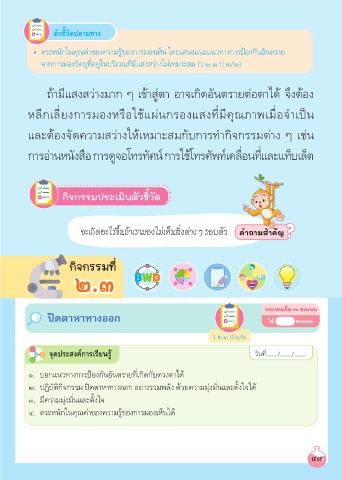 • ตระหนักในคุณค่าของความรู้ของการมองเห็น โดยเสนอแนะแนวทางการป้องกันอันตราย