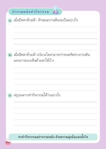 ๒. เมื่อปิดตาด้วยผ้า อวัยวะใดสามารถกำาหนดทิศทางการเดิน