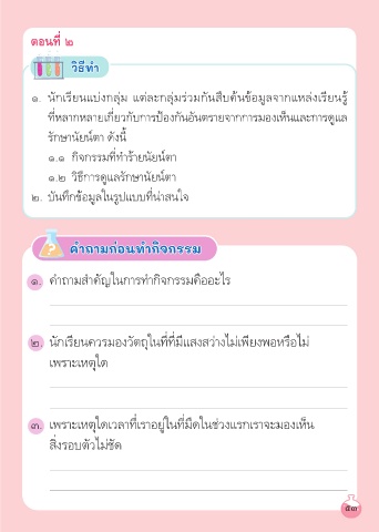 ๒. นักเรียนควรมองวัตถุในที่ที่มีแสงสว่างไม่เพียงพอหรือไม่