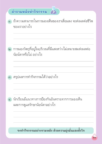 ๔. นักเรียนมีแนวทางการป้องกันอันตรายจากการมองเห็น
